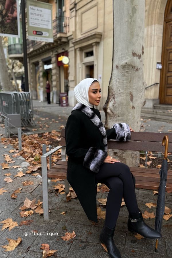 New black cashmere signature with fur rex